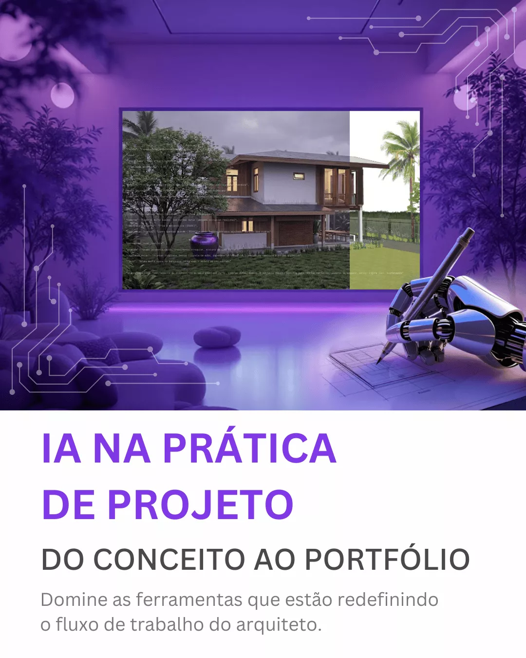 Aprenda a 'falar a língua da máquina' e domine o fluxo de trabalho que está redefinindo o mercado de arquitetura. Realize renderizações, vídeos e projetos com maior controle e eficiência.